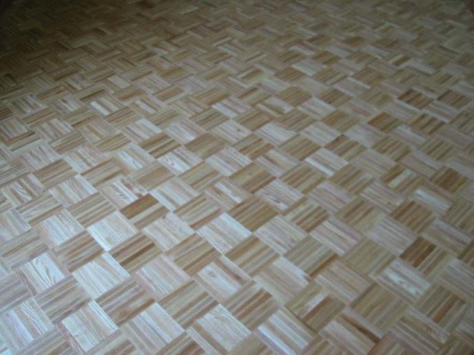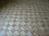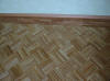 Mosaikparkett Esche Natur 160x160x8mm diagonal zur Wand mit umlaufenden Fries in Buche, verlegt geschliffen und geölt, ohne Blitzlicht, Lichtquelle von links