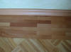 Mosaikparkett Esche Natur 160x160x8mm diagonal zur Wand mit umlaufenden Fries in Buche, mit Blitzlicht, Lichtquelle von links