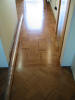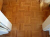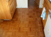 Mosaikparkett Mecrusse 160x160x8mm Würfelmuster, im Flur und Küche verlegt geschliffen und 3x mit einem Wasserlack versiegelt, Wohnzimmer wurde nur geschliffen und versiegelt