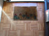 Mosaikparkett Mecrusse 160x160x8mm Würfelmuster, im Flur und Küche verlegt geschliffen und 3x mit einem Wasserlack versiegelt, Durchgang zur Küche